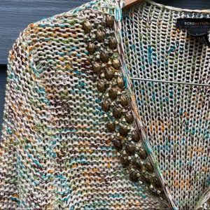 BCBGMaxAzria Tan beaded knit cardigan sweater size large