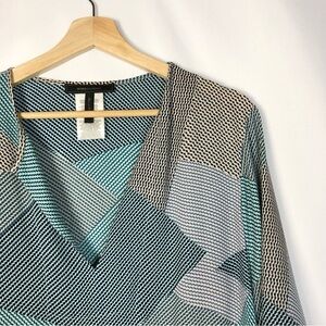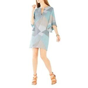 BCBGMaxAzria Tati Light Surf Combo Blue Ruffle Sleeve Mini Dress L
