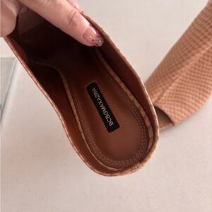 BCBGMaxAzria Textured Tan Peep-Toe Heels metal heel
