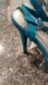 Chic turquoise heels with dazzling gem accents. Ideal for adding flair.