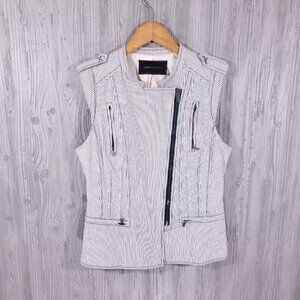 BCBGMaxAzria Vest Canvas Moto Zip Jacket Stripe Cream Navy Y2K Vintage Retro