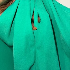 Chic and vibrant green piece. Ideal for stylish occasions. Worn once. Has a small tear in the keyhole part of the neckline. Has POCKETS!