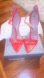 BCBG red heels with sleek straps. Perfect for a bold statement.