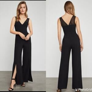 BCBGMaxAzria Vicktoria Sleeveless Black Wide Split Leg Jumpsuit Business Sz M