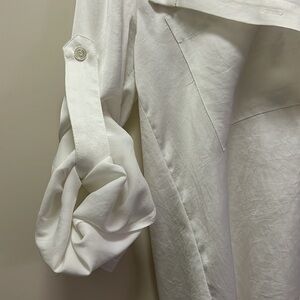 BCBGMaxAzria White Asymmetrical Waterfall Long Sleeve Blouse