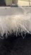 Chic clutch with white feathered design. Features a sleek chain strap for modern elegance. 9x6