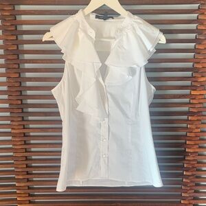 Chic white blouse with ruffled front. Sleeveless design. Button-down closure. Great condition. š„Offers welcomeš„