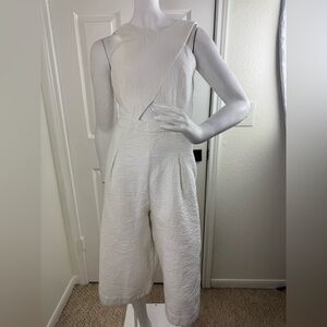 BCBGMaxAzria White Textured Jumpsuit with Wide-Leg Design