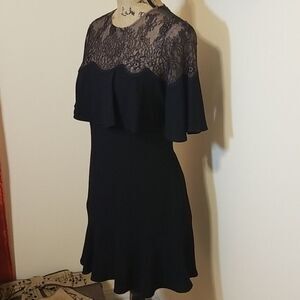 BCBGMaxAzria Women's Black lacy Rosy Evening Dress size XS. Sheer scalloped black lace nude yoke. Flutter ruffle hem and sleeves. Invisible back zipper, fully lined. Excellent pre loved condition, smoke free home, ships next day. Over 2,500 Poshmark Sales. Bundle and Save!