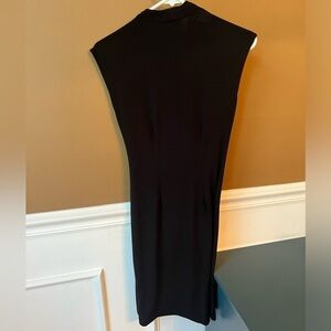 BCBGMaxAzria Women’s Black Ruched Bodycon Sleeveless MIDI LBD Cocktail Size XXS