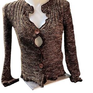BCBGMaxAzria Women's Brown Marled Button Front Cardigan Sweater Medium