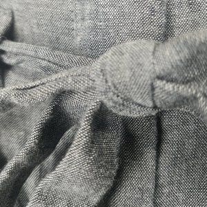 75% linen, 24 % cotton, 1% spandex waist band, slate grey color, mountain bohemian, natural linen look, lightweight feel, earthy, with welt pockets