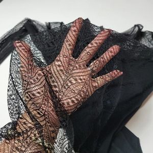 BCBGMaxAzria Women's Lace Sheer Lexi Top Long Sleeve Mesh Black Size Small
