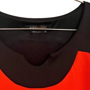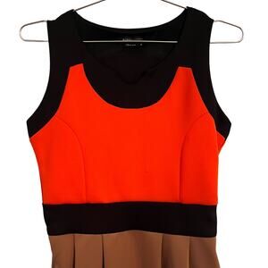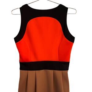 BCBGMaxAzria Orange, Black, Camel Color Block Body Con Dress XS