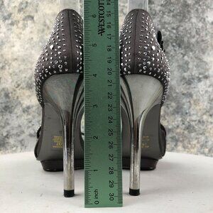 BCBGMaxAzria Women's Size 7B Peeking Grey Silver Fabric Embellished Heels
