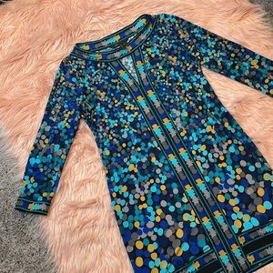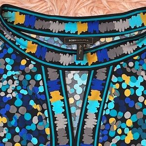 BCBGMaxAzria Women's Size Small Dress Blue Black Polka Dot A-Line Key Hole