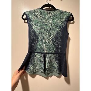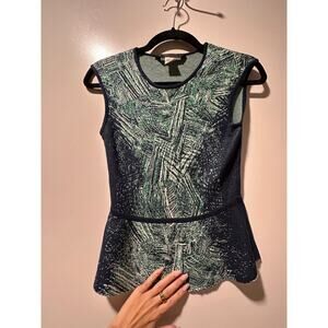 BCBGMaxAzria Women's Sleeveless Geometric Blue Green & White Pattern Top