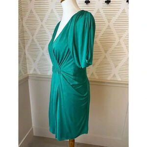 BCBGMaxAzria Women’s Small Green Faux Wrap Draped Sleeve Dress
