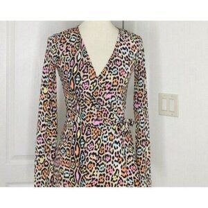 BCBGMaxAzria Wrap Dress XS Animal Print Leopard Jersey Adele Long Sleeve