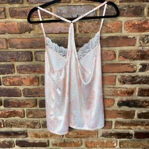 BCBGMaxAzria Y2k Pink Leopard Animal Satin Lace Trim Cami Tank Top Size Large
