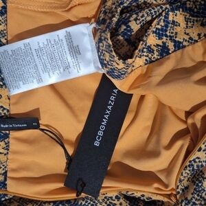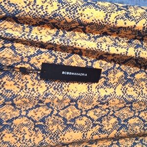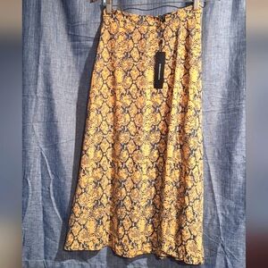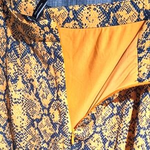 BCBGMaxAzria Yellow and Blue Snake Print Midi Skirt