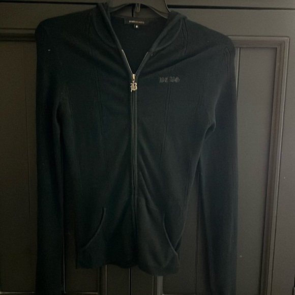 BCBGMaxAzria Zip Up Black Cardigan with Hoodie Size Medium