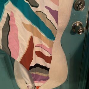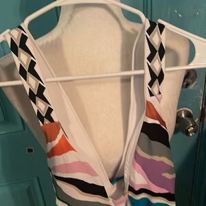 BCBG MaxAzria Zoey plunge Crossback Tummy control Quick Dry Bathing Suit Size 10 Multicolored NWT 85% nylon 15% spandex hand wash only versatile plunging Vneck crossback detail stretchy blend removable soft cups pull on