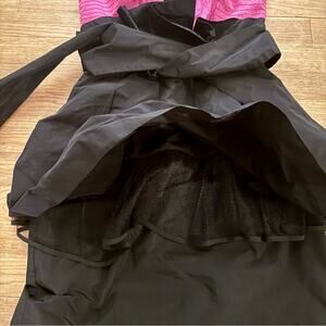 BCBGMaxAzria black pink sleeveless flare a-line ruffled mini dress size 2 b27
