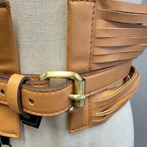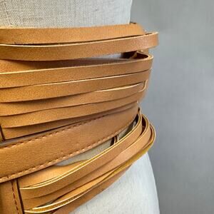 BCBGMaxAzria multi strand faux leather statement corset belt in Camel size Small