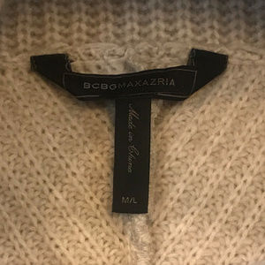 BCBGMaxAzria oversize sweater wool blend M/L. Good condition. Wool blend. Length 30". Beautiful on and very warm. 3/4 sleeves.