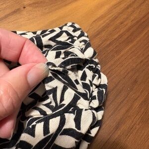 Super cute little flippy skirt! Fun cream and black graphic pattern. Ruched waist band - both sides have loose missing stitching to the ruching, but this is easily fixed! Doesn’t affect the skirt/not really noticeable when wearing. Size medium.
