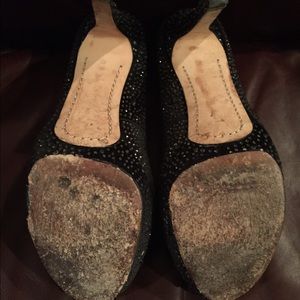 Fun rhinestone black fabric pumps. These have been worn but are still in good shape, missing a few stones on left shoe as shown in picture.