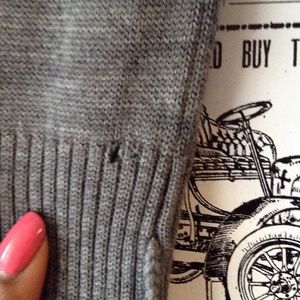 BCBG Max Azria size extra small heather gray turtleneck sweater dress three-quarter inch sleeves with pleats and ribbing at waist it is 100% merino wool gently worn with signs of wear, small hole on waistband.