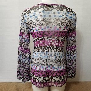 BCBGMaxAzria top Medium geometric stripe polka dot sheer empire bell sleeve