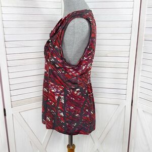 BCBGMaxAzria Abstract Print Knot Front Silk Blouse Sleeveless Black Red Medium