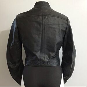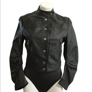 BCBGMaxAzria Black Leather Crop Snap Moto Jacket Size Small Excellent Condition