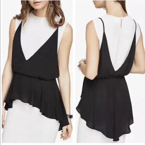 BCBGMaxAzria Black & White Layered Elain peplum hi and low blouse Size Small S