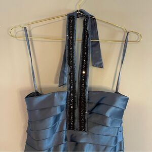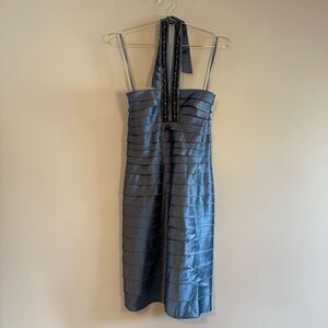 BCBGMaxAzria Blue Grey Woven Embellished Halter Dress | SZ 4