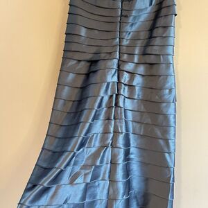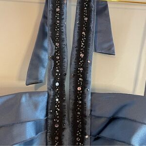This dress is exceptionally gorgeous, a rich blue satin woven halter formal dress from BCBGMaxazria, in a size 4.