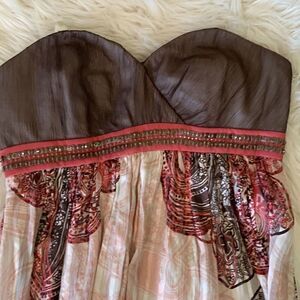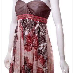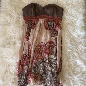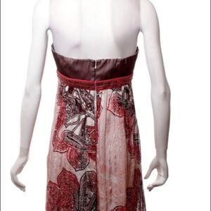 BCBGMaxAzria | Brown/Maroon Strapless Paisley Print Silk Dress | 2