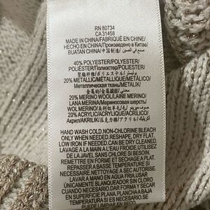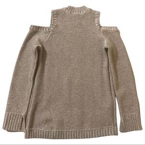 BCBGMaxAzria Cold Shoulder Champagne, Cream & Silver Metallic Arlene Sweater