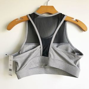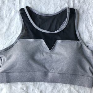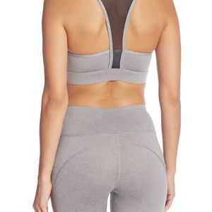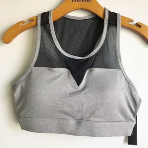 BCBGMaxAzria Gray Mesh Panel Scoop Neck Racerback Sports Bra Large