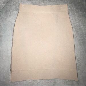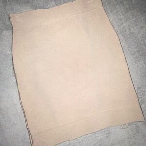 Sexy mini skirt made of thick, stretchy, flattering bandage material. Sandshell (cream) color. Try it with a black lace bodysuit or a white stretch top and heels for a night out!