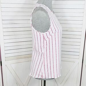 BCBGMaxAzria Striped Split Back Hem Sleeveless Tank Top Shirt Red White