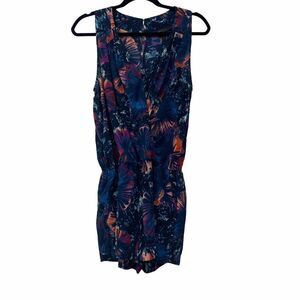 BCBGMaxazaria Dark Tropical Print V Neck Romper