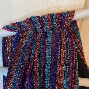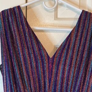 Well hello sparkles! This gown is everything! Colors are amazing, fabric is easy, great mesh panels on the sides. VNeck in the front and in the back. Perfect for a party or other special occasion.