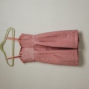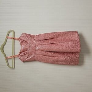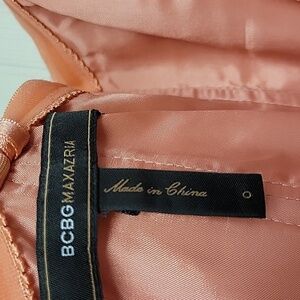 BCBG Maxazria sz 0 peach blush dress with removable spaghetti straps. fully lined with acetate, extra layer of tulle at bottom. dress us 52% nylon, 34% polyester, 14% Metallic (D3-029)