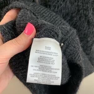 Size S. Size and brand tag was removed. 50% Alpaca 50% Alpaca. Length 24 inches. Armpit to armpit 16 inches. Soft. Zip-up. Charcoal Gray. Great condition!