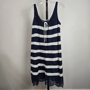 BCBGMaxazria Augustin Dress Striped Lace Sleeveless Loose Fit Nautical Medium