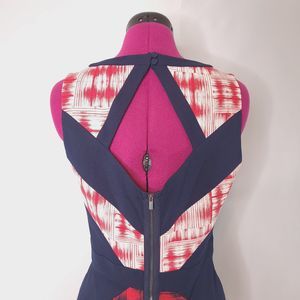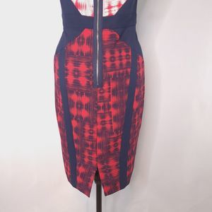 BCBGMaxazria Averie Ikat Red Blue Sheath Dress
